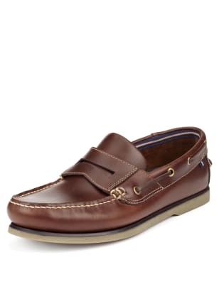 Leather Slip On Boat Shoes Blue Harbour M S Very well made.