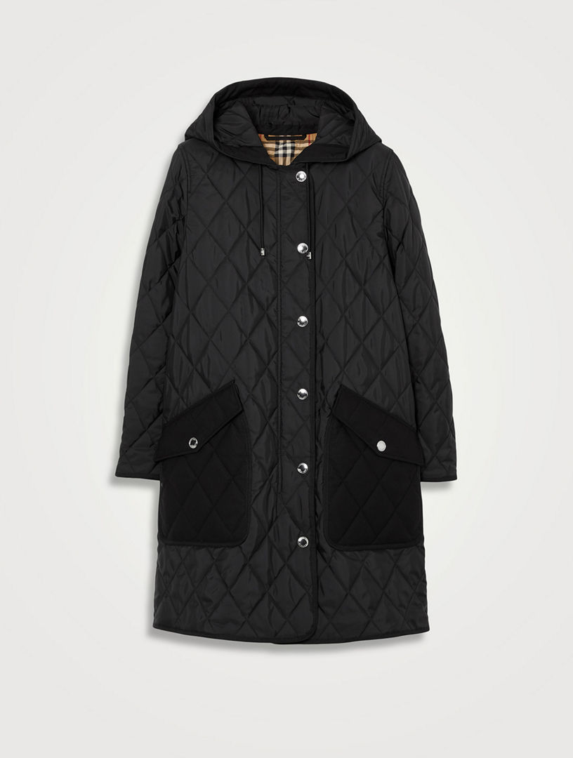 Diamond Quilted Nylon Hooded Coat in Black Burberry Official Very well made.
