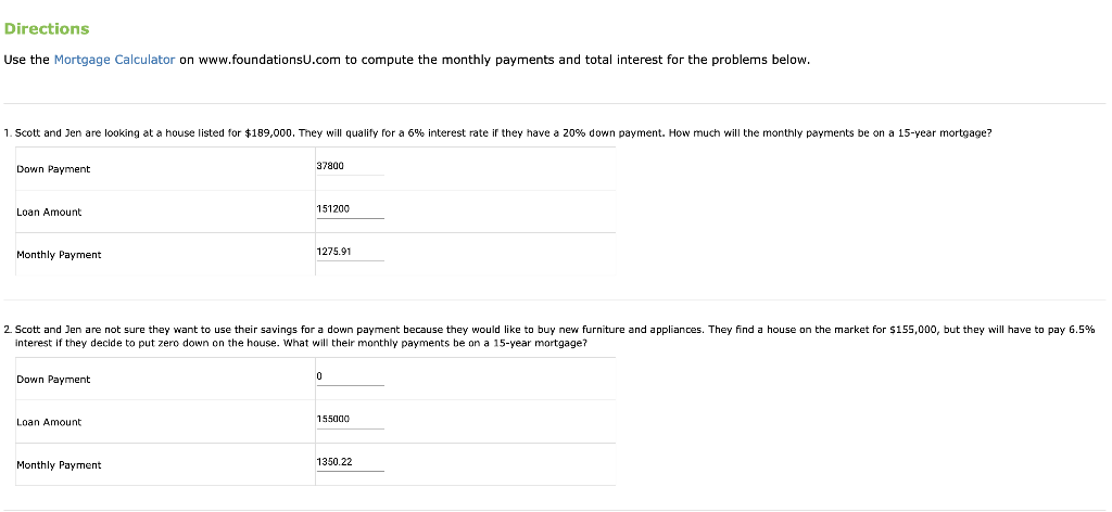 Directions Use the Mortgage Calculator on Chegg Very well made.