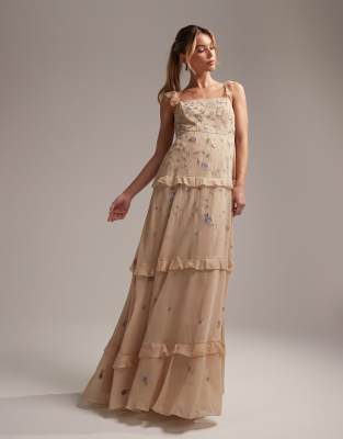 ASOS DESIGN Bridesmaid cami embellished maxi dress with embroidery Very well made.