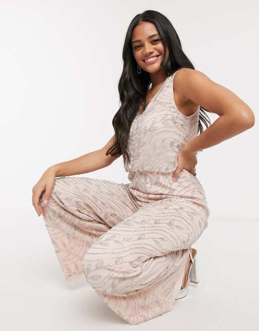 Lace Beads embellished jumpsuit in cream Very well made.