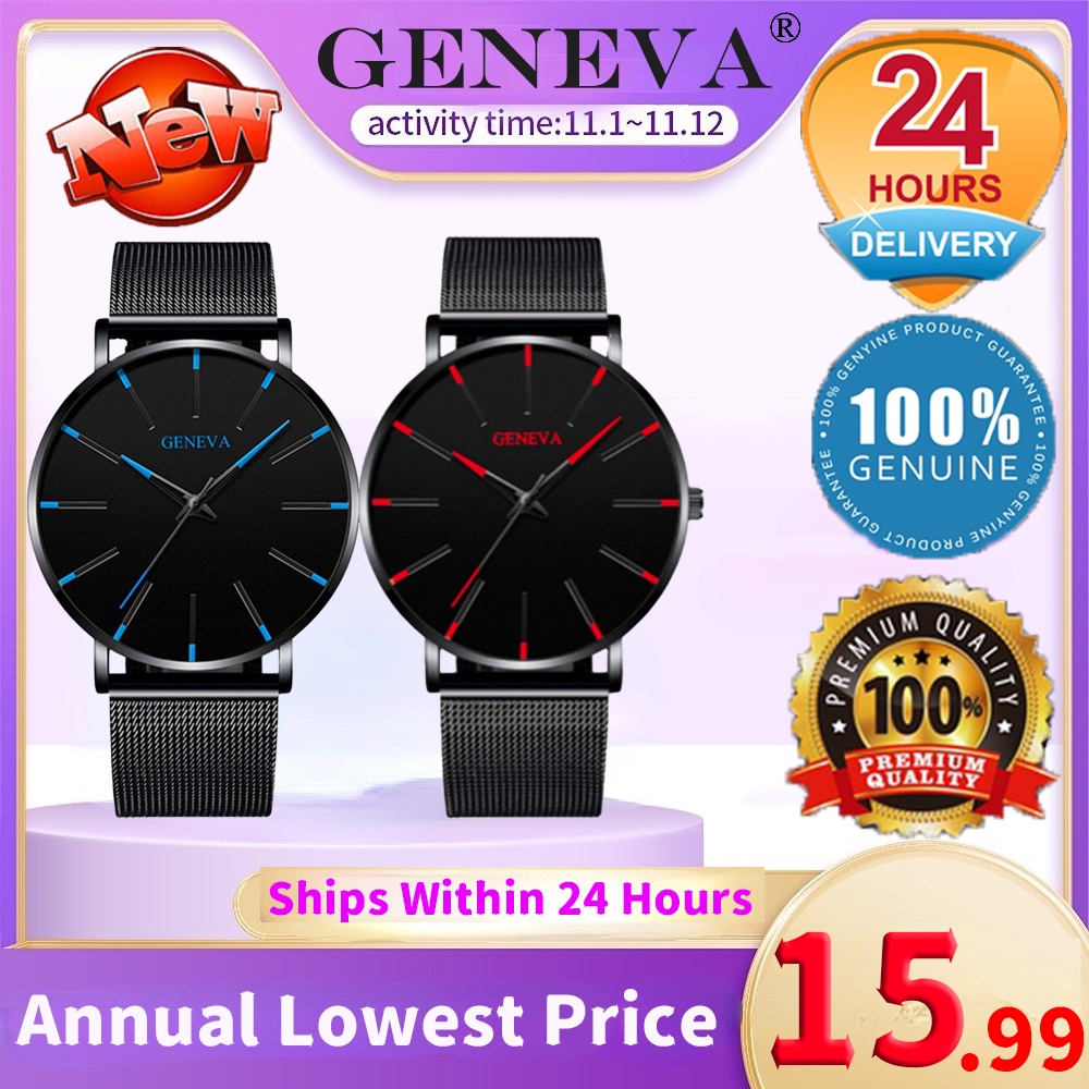 Men s GENEVA Watch Black With Stainless Steel Strap Shopee Singapore Very well made.