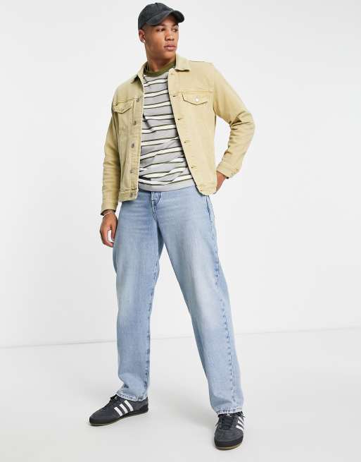Come indossare e abbinare una giacca di jeans beige con pantaloni Very well made.