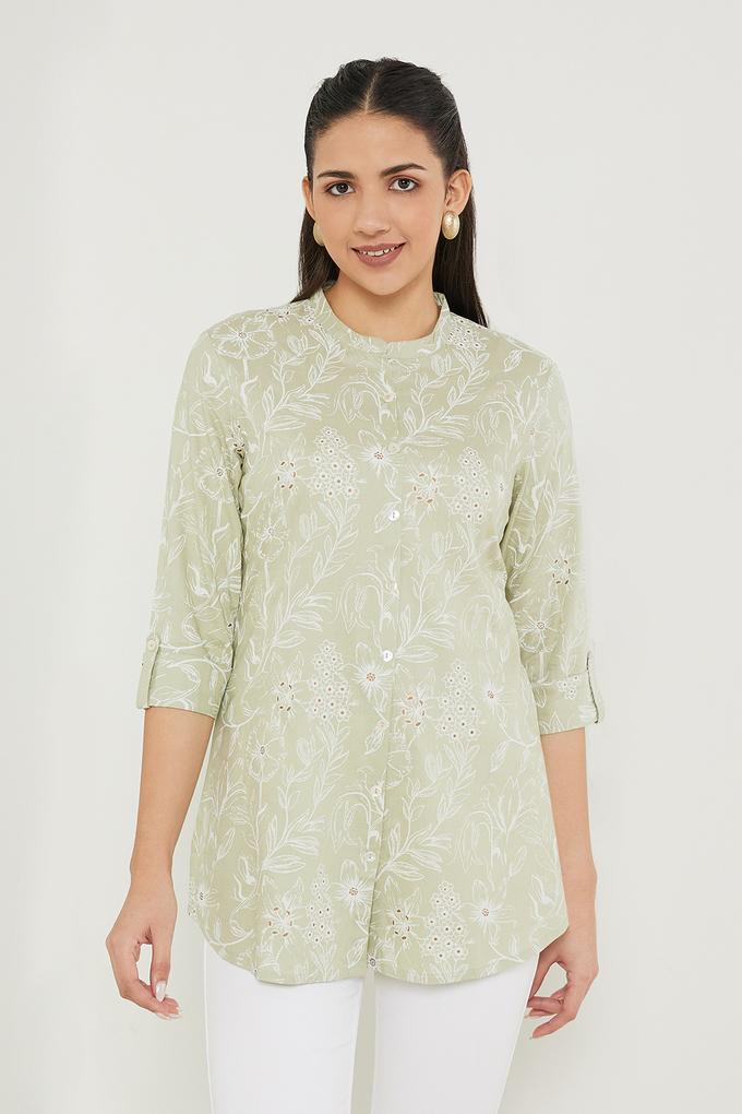 Buy HAUTE CURRY Green Printed Rayon Mandarin Women s Tunic Very well made.