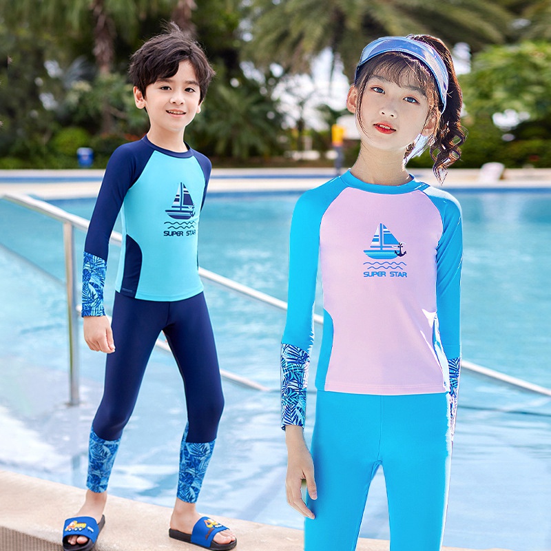 Boys and Girls Long Sleeve Swimsuit Kids Quick drying Split Sports Very well made.