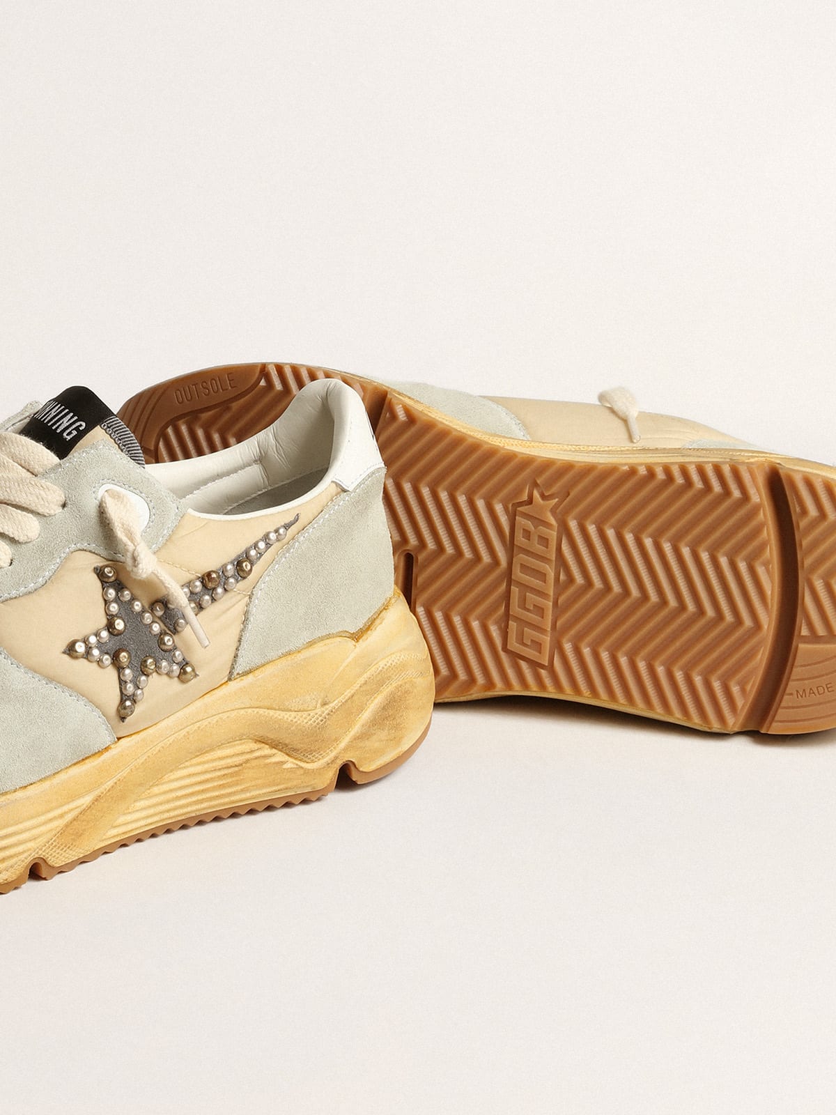 Running Sole Uomo color ghiaccio con stella in suede con borchie Very well made.