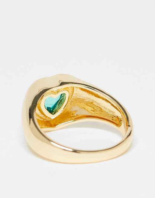 Petit Moments gold plated heart stone ring in gold with green Very well made.