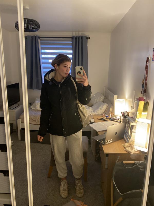 Hollister faux fur lined hooded heavyweight puffer jacket in black Very well made.