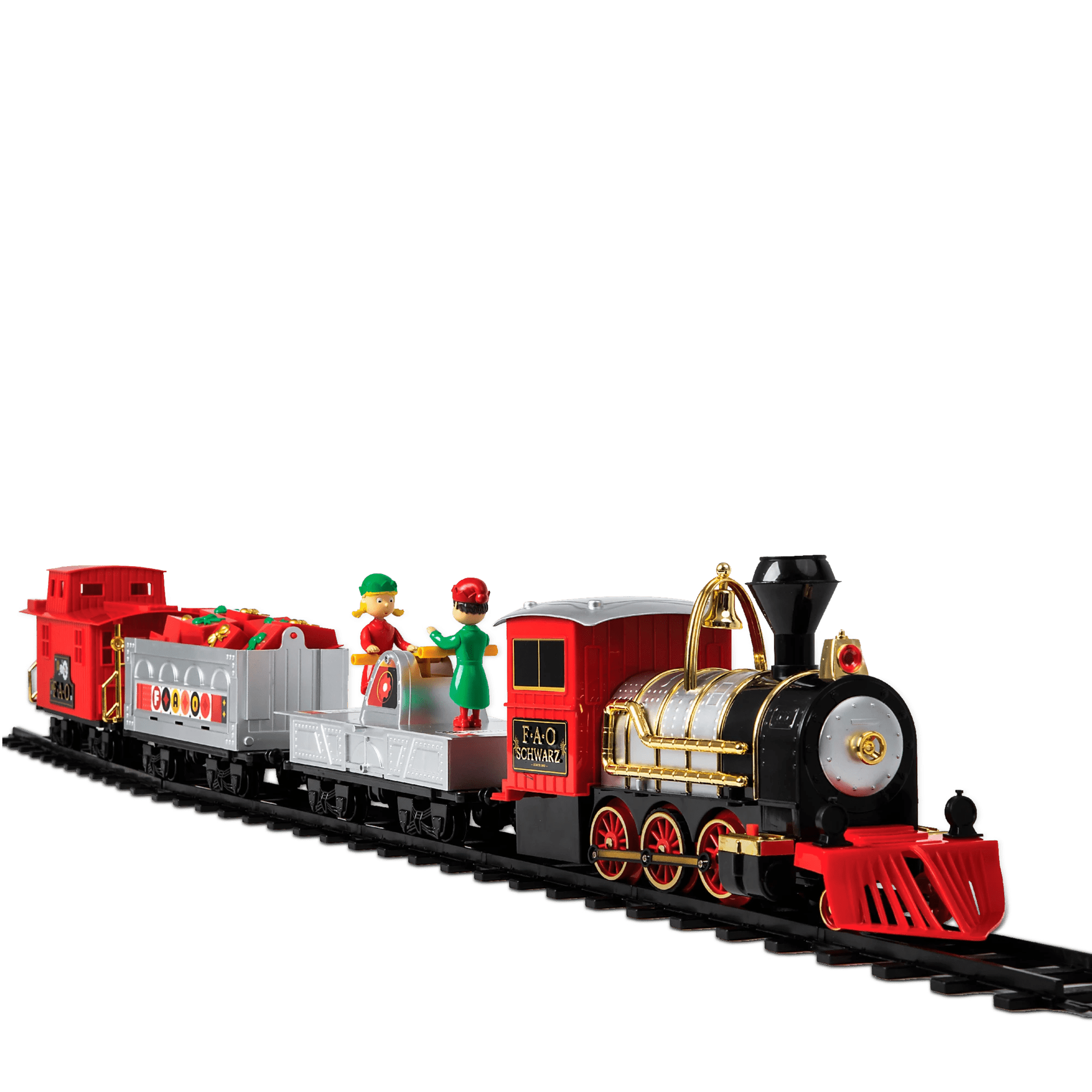 FAO Schwarz 1006832 Classic Motorized Train Set Complete Toy Set with Engine Cargo 18 of Modular Tracks Red Black Pack of 30 Very well made.