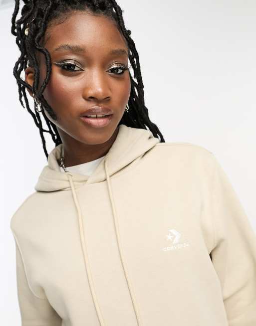 Converse Felpa color pietra classica con cappuccio e logo ricamato Very well made.