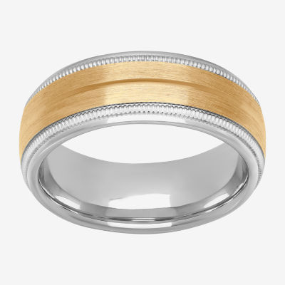 LANDA JEWEL Solid Gold Inlaid Heavy 8mm Sterling Silver Mens Wedding Band Raised Center Comfort Fit Two Tone Very well made.