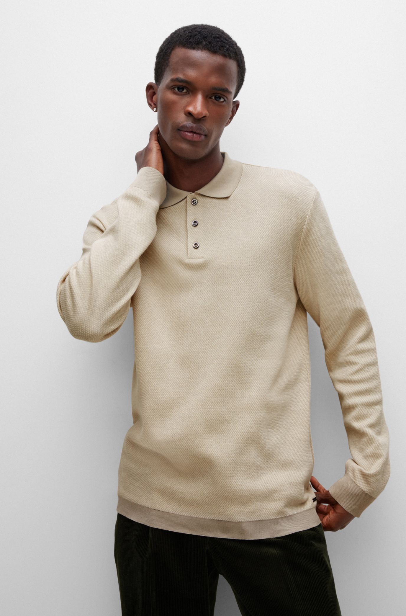 BOSS Long sleeved polo shirt in cotton and cashmere Very well made.