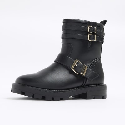 Black wide fit buckle detail biker boots River Island Very well made.