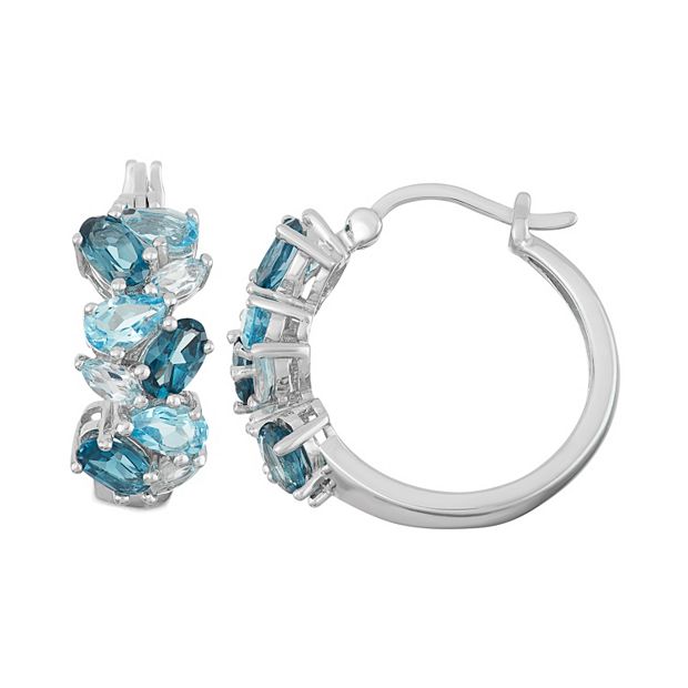 Sterling Silver London Swiss Sky Blue Topaz Cluster Hoop Earrings Very well made.