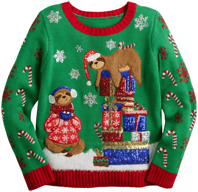Girls 4 20 33 Degrees Long Sleeve Crewneck Sloths on Presents Christmas Sweater in Regular Plus Size Very well made.