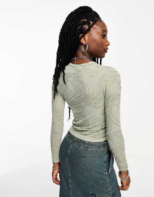 Weekday Sheer mesh long sleeve top in green ASOS Very well made.