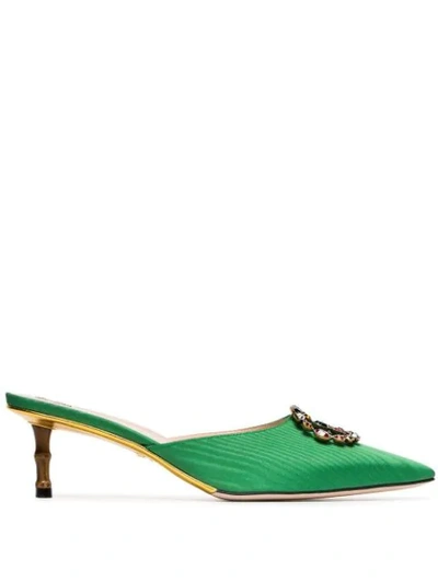 Green Unia Gg 45 Crystal Satin Mules Very well made.