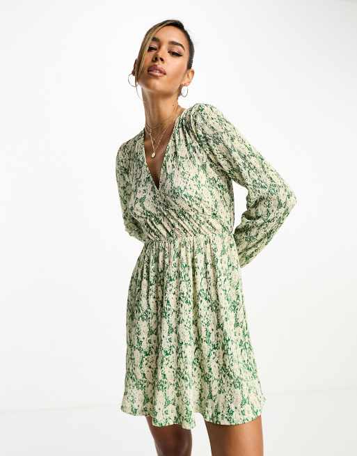 Mango Vestito corto con scollo a V verde a fiori con arricciature Very well made.
