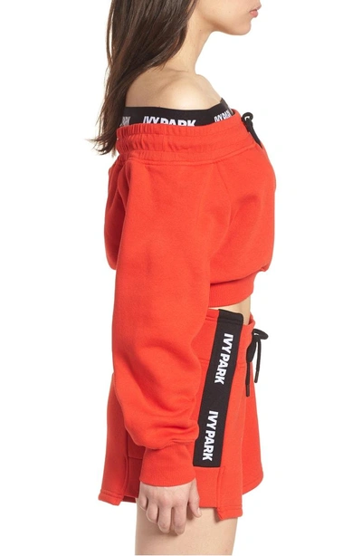 Ivy Park Off The Shoulder Crop Sweatshirt In Fiery Red ModeSens Very well made.
