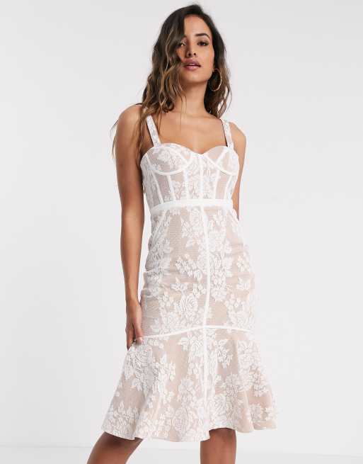 Jarlo lace midi dress with corset detail in ivory ASOS Very well made.