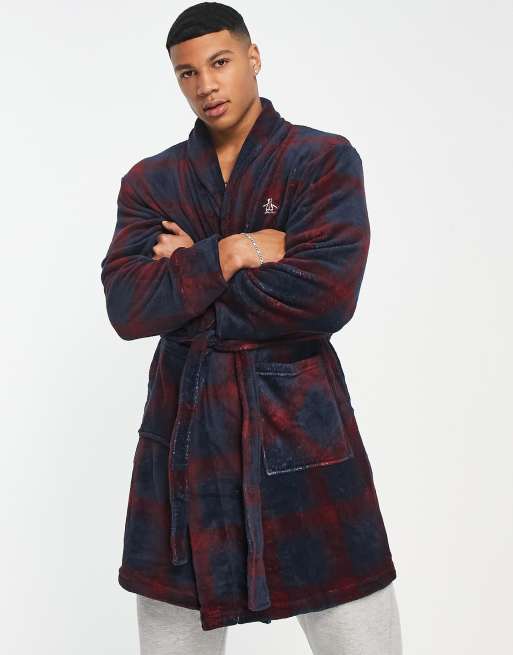 Original Penguin fleece robe in navy red check Very well made.
