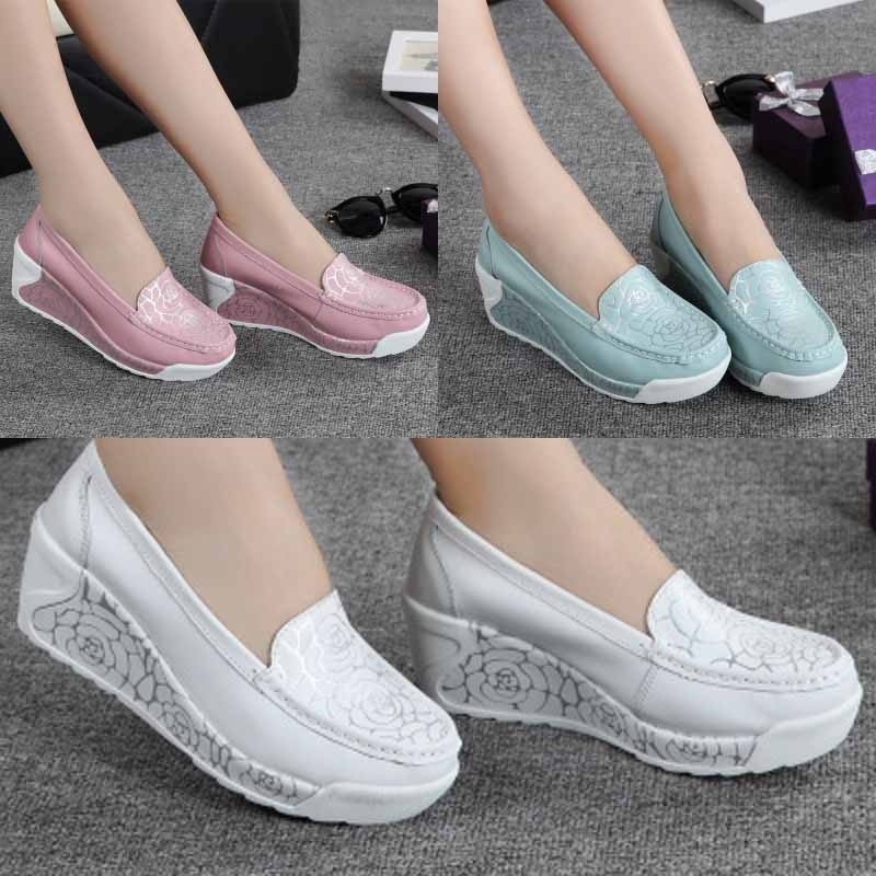 YOGO Fashion Summer Genuine Leather Women s Shoes White Nurse Shoes Swing Work Single Shoes Lady s Heel Platform Shoes Very well made.