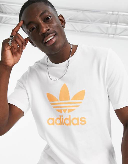 adidas Originals T shirt met trefoil logo in wit en oranje Very well made.