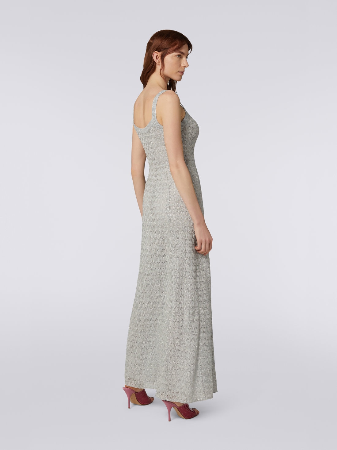 Abito lungo in pizzo misto viscosa con lam Argento Grigio Lam Missoni Very well made.