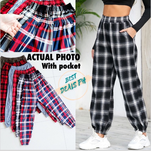 PLAID BAGGY DRAPE CHECKERED JOGGER PANTS WITH SIZES Shopee Very well made.