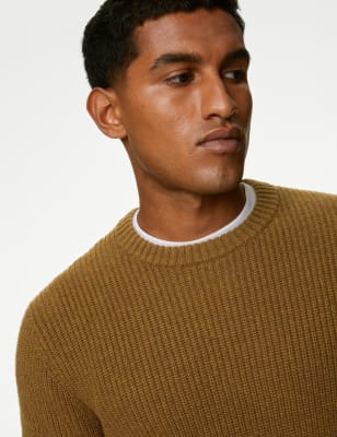 Lambswool Blend Textured Crew Neck Jumper M S CA Very well made.