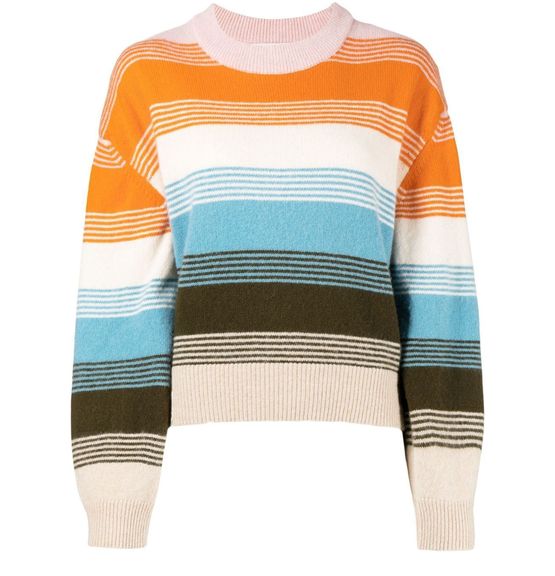 Women s Brushed Lambswool Jumper With Allover Stripe In Blue Smoke Very well made.