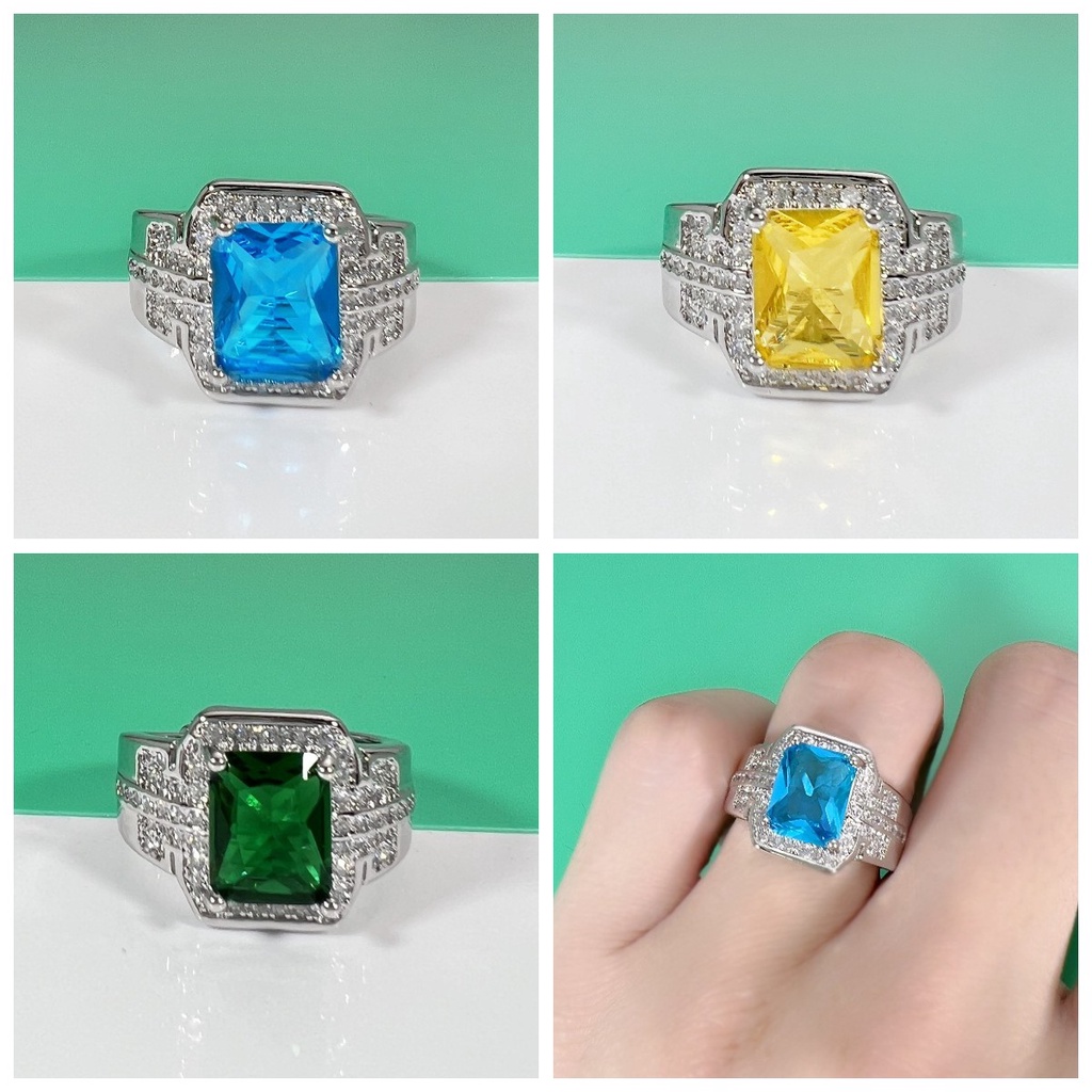 Men s Ring S925 Silver Sapphire Green Crystal Yellow Diamond Very well made.