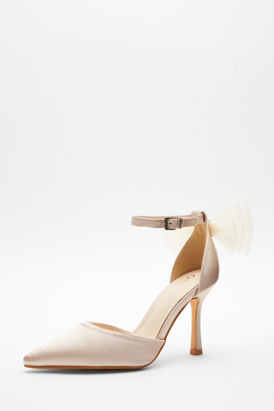 Champagne Satin Organza Bow Court Heels Quiz Clothing Very well made.