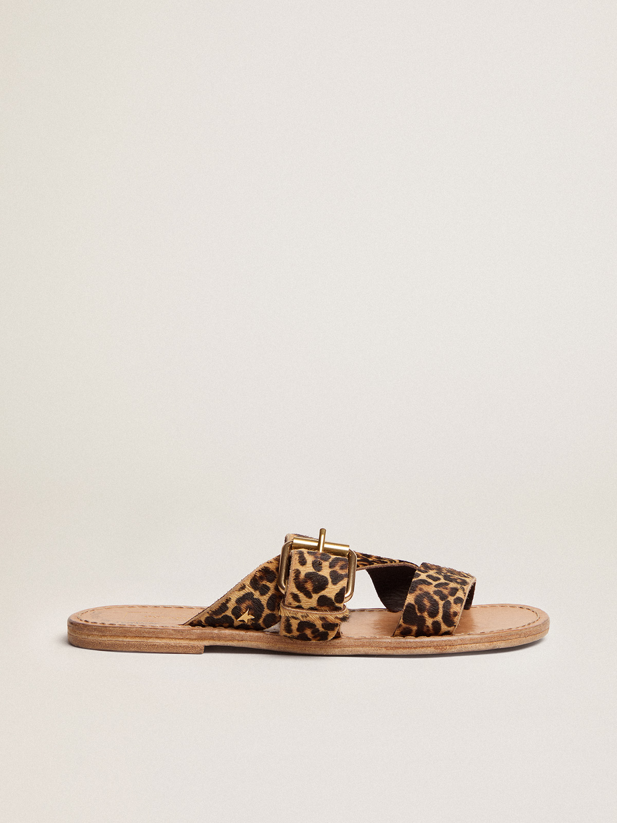 Leather Animal Print Flat Sandals Very well made.