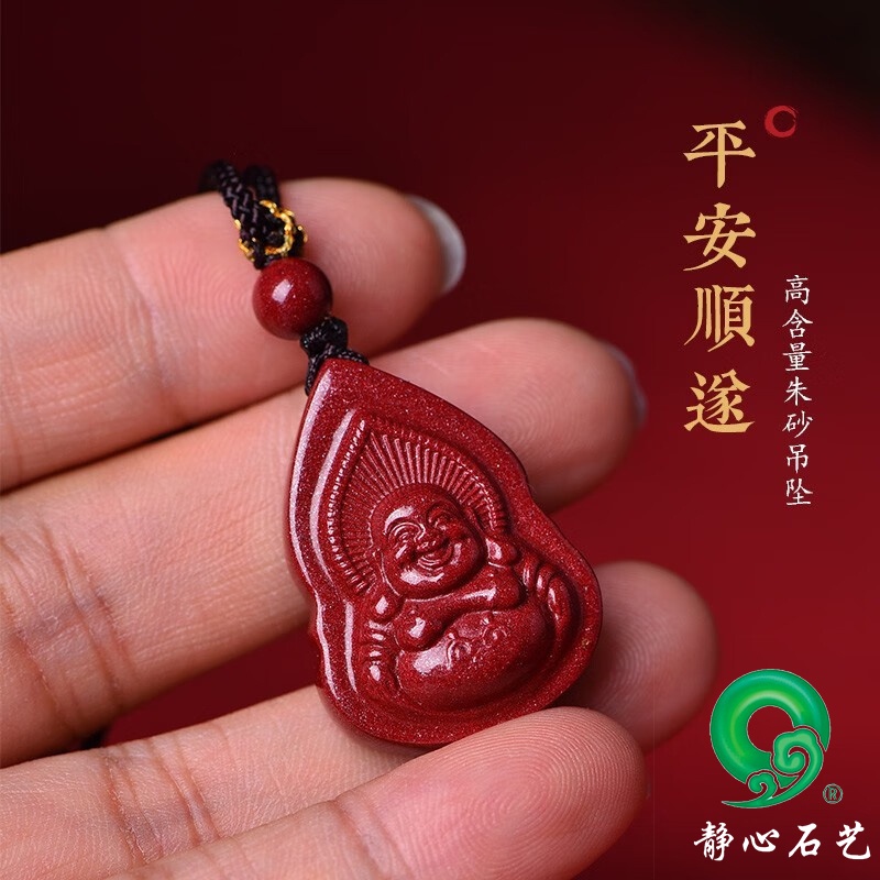 Cinnabar Amulet Buddha Pendant Necklace Very well made.