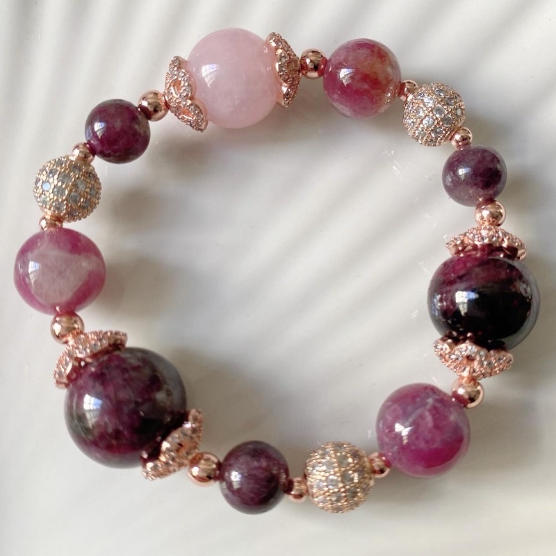 Oriental Beauty Bracelet Plum Tourmaline Red Garnet Rose Quartz Pegmatite Very well made.