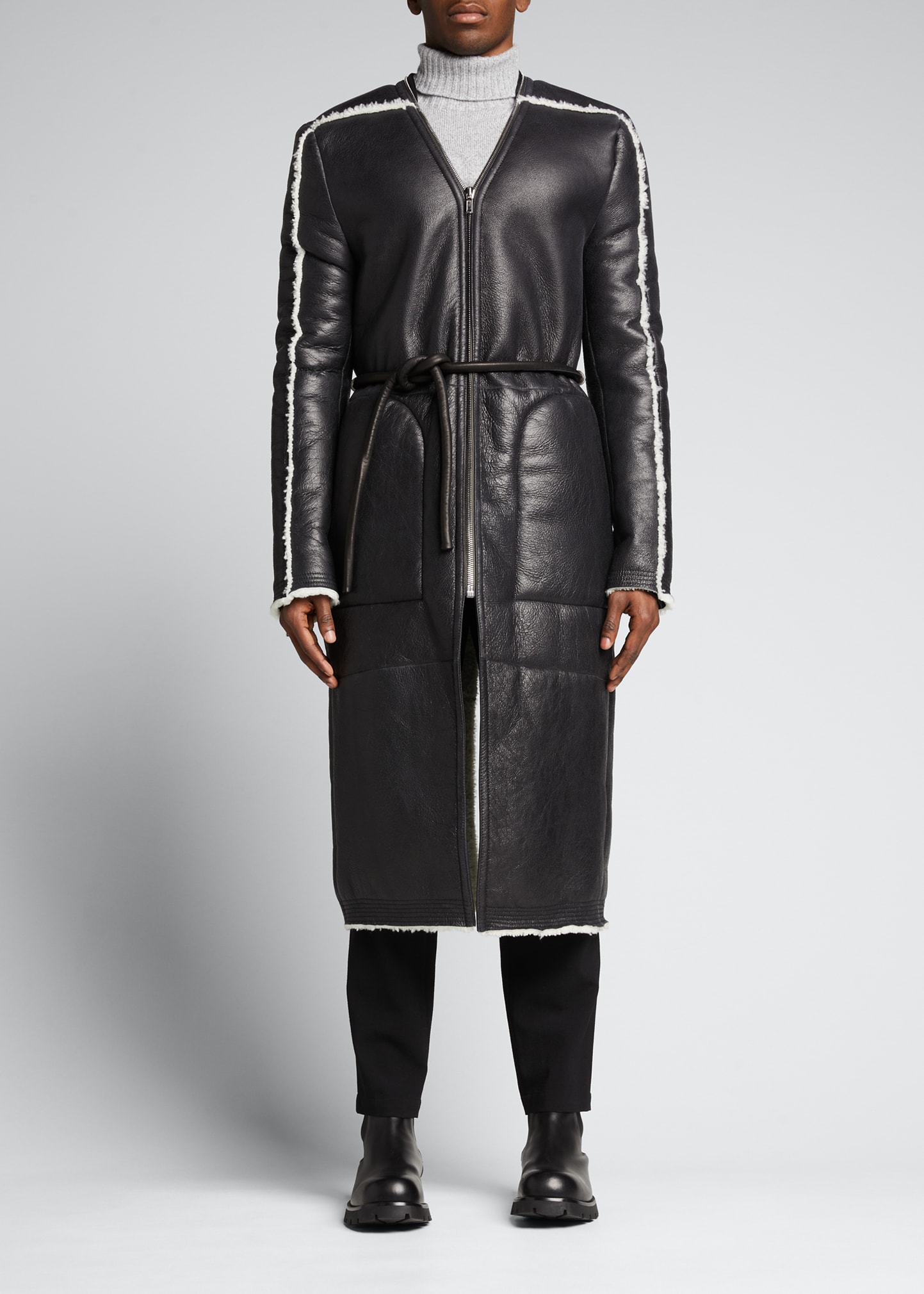 Men s Long Shearling V Neck Coat Very well made.