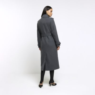 Grey belted longline trench coat River Island Very well made.