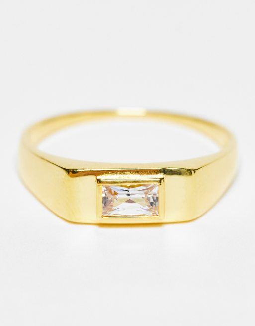 ASOS DESIGN sterling silver pinky ring with crystal in 14k gold Very well made.