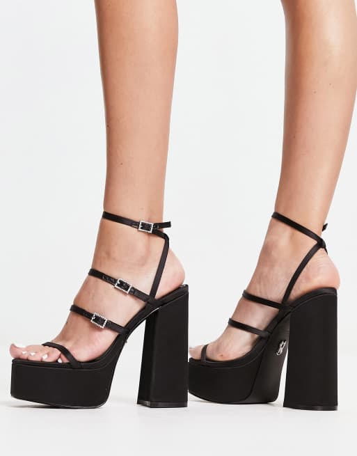 Steve Madden Elavator platform sandals in black satin Very well made.