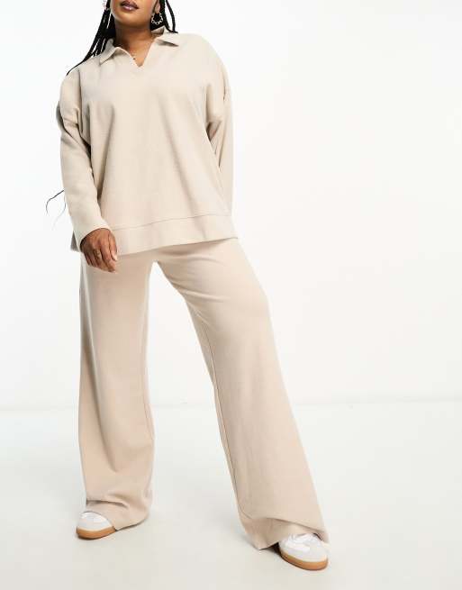 ASOS DESIGN Curve super soft wide leg sweatpants in warm cream Very well made.
