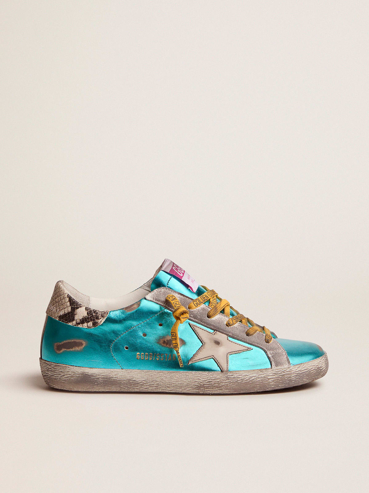 Sneaker Super Star LTD verde acqua laminate con talloncino pitonato Very well made.