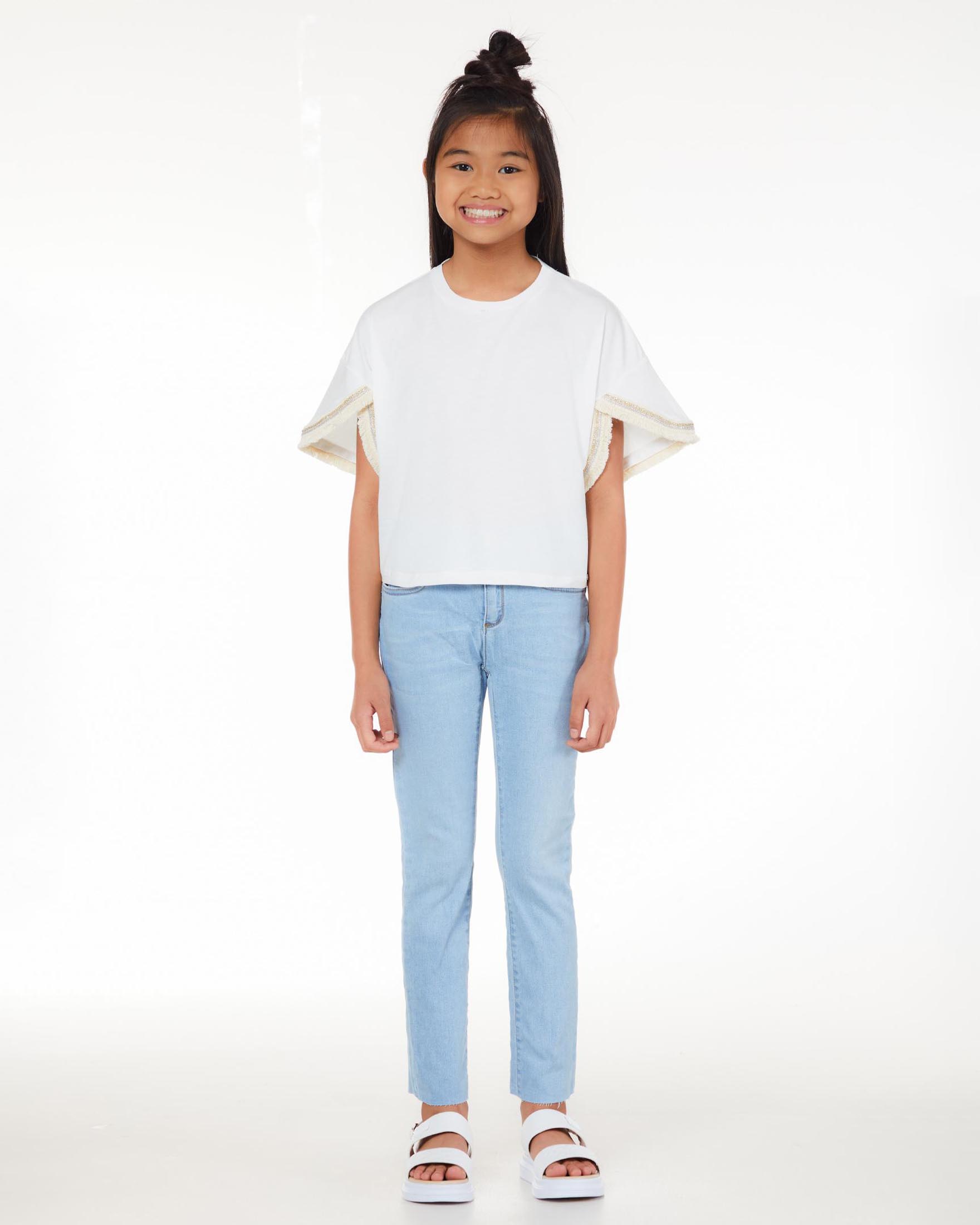 T shirt bianca con manica a pipistrello in puro cotone con frange Very well made.