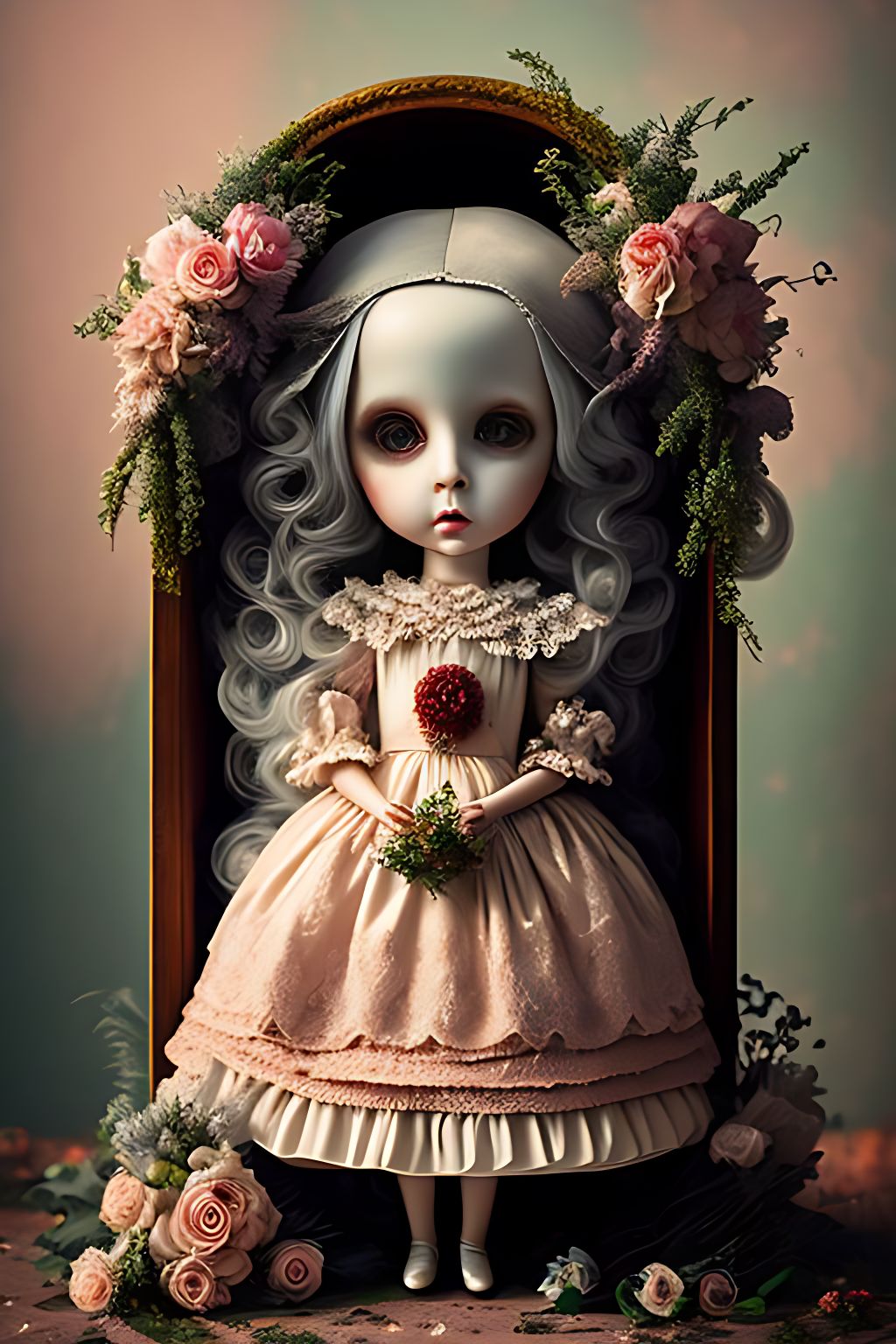 Creepy doll with wild hair on Craiyon Very well made.