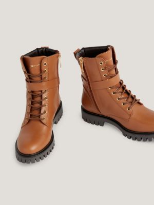Buckle Strap Cleat Leather Ankle Boots Brown Tommy Hilfiger Very well made.