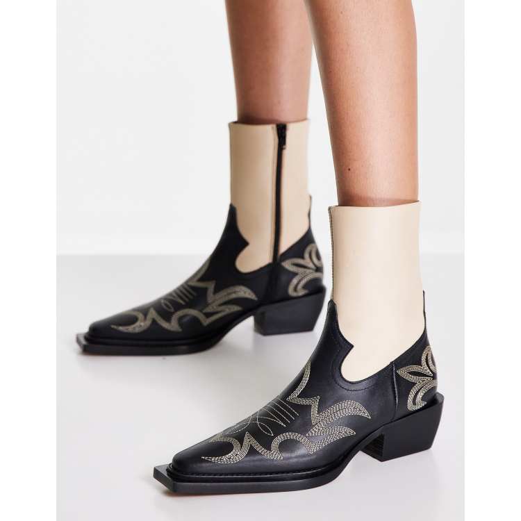 Topshop Ariel premium leather stitched western boot in white Very well made.