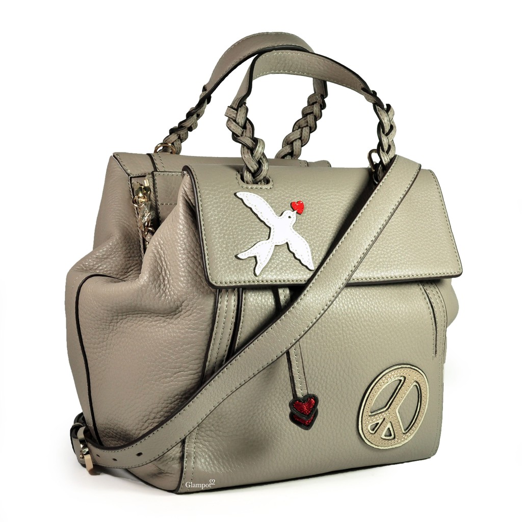 Tory Burch Peace Embellished Half Moon Small Satchel in French Gray No. 36323 Very well made.
