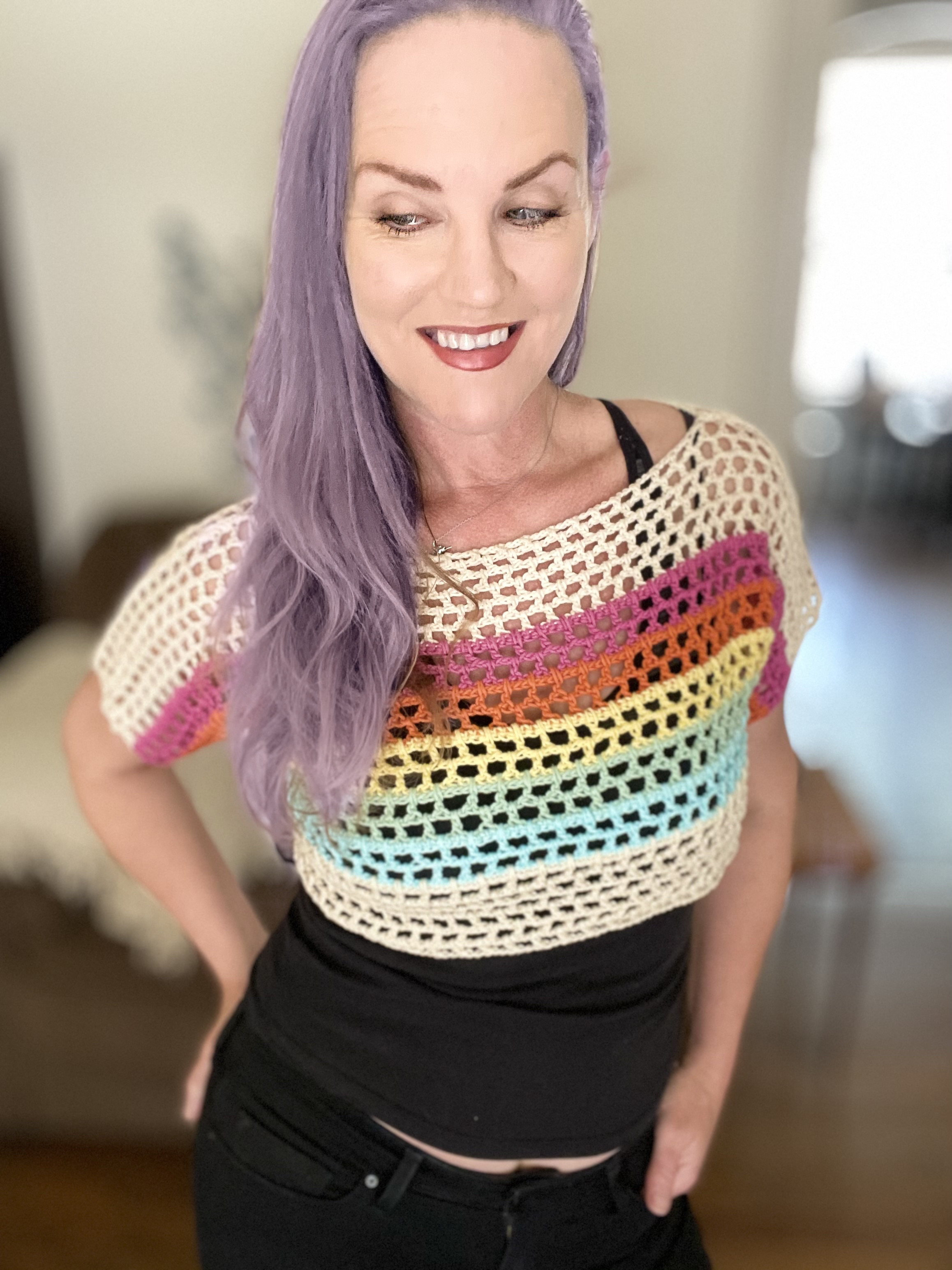 Rainbow Crochet Crop Top Very well made.