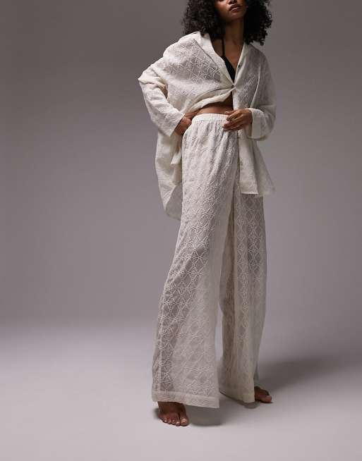 Topshop embroidered chiffon beach pants in ivory part of a set Very well made.