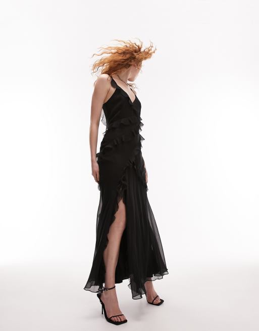 Topshop ruffle detail midi slip dress in black Very well made.